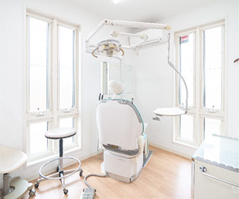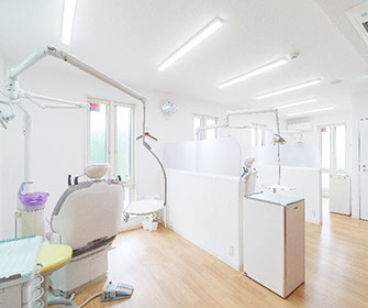 リラックスして受診いただけるよう、白を基調にした清潔感と開放感のある空間に、プライバシーに配慮した半個室の診察室とインプラントなどの外科施術を行う専用の診察室を設けております。